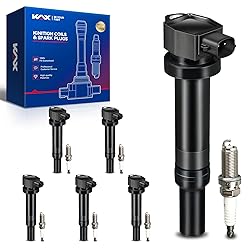 KAX 6-Pack Ignition Coils and Double Iridium Spark Plug Set Fit for Hyundai 2007-2009 Santa Fe 2.7L, Kia 2007-2010 Rondo 2.7L, 2006 Optima(EngineVIN:4), 2007-2010 Optima 2.7L, UF558