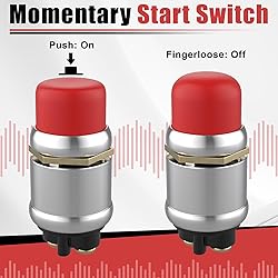 Heavy Duty 50A Capacity:The Push Button Starter Switch is rated at 12V and 50A, ensuring reliable performance for heavy-duty applications such as engine starting and horn activation Weatherproof and Dustproof Design:Featuring a robust weatherproof and dustproof rubber cover, this switch is built to withstand harsh environments, preventing dirt, moisture, and dust from interfering with its functionality High-Quality Materials:Constructed with diecast aluminum housing and pure copper contacts, the switch is designed for durability and long-lasting use. The brass, nickel-plated screw terminals provide secure and stable connections Easy Installation with Mounting Plate:The switch requires a standard 5/8" (0.625") mounting hole and can be easily installed on panels up to 3/8" thick. It includes an additional iron plate for secure and easy installation, making it suitable for various DIY and professional applications Versatile Applications:Ideal for use in cars, trucks, boats, RVs, and ATVs, this push button starter switch is perfect for a wide range of applications, including engine starting, horn activation, and other electrical equipment