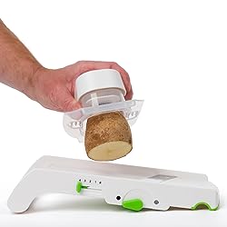 - The Prep Solutions Multi Slicer offers versatile slicing and dicing with 4 adjustable thickness settings (1mm to 5mm) and a julienne option, ideal for preparing fruits and vegetables for salads, pastas, tarts, and more. Designed for safety and stability, it includes a hand guard with stainless steel prongs and a non-skid base for secure, precise slicing. The built-in bowl grooves let you slice directly into a bowl, and the slicer is dishwasher safe for effortless cleanup. PrepSolutions delivers innovative, durable kitchen tools to simplify meal prep with convenience and efficiency.