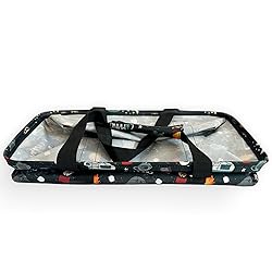 - This tote is made with 100% polyester and features convenient side mesh pockets, a sturdy metal frame, and double straps for easy carrying. Measuring 22"L x 11"W x 13"H, it's the perfect size for all your on-the-go needs. Get ready to experience the ultimate in convenience and style with Custom Collapsible Tote!