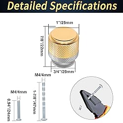 - Features: 1.Our knurled drawer knobs are individually bagged, each with two different types of mounting screws for convenient installation. 2.The colour-blocking and knurled texture design of the drawer knobs deliver a gorgeous and fashionable visual impact. 3.You can have a luxurious look to your house in daily life within your adequate budget. 4.Constructed of high-hardness solid aluminium alloy, our knurled drawer knobs is resistant to corrosion without rusting. 5.The diamond pattern surface has been treated with elaborate forging and polishing that provide a comfortable grip without slipping. 6.Our knurled cabinet knobs are compatible with Boho, European, Minimalist, Modern or Mid-century furniture. 7.These premium hardware knobs are an affordable option if you crave an upgrade or replacement for knobs in your kitchen cabinets, cupboards, wardrobe, bathroom vanity, or dresser drawers. Specification: Color: Grey & Gold Material: Aluminium Alloy Regular Screws : M4 * 1" / 25mm Breakaway Truss Head Screws: M4 * 1-3/4" / 45mm Package Included: 2 x Knurled Cabinet Pulls 2 x Regular Screws 2 x Breakaway Truss Head Screws Warm Tips: 1.We offer screws in two different lengths for thicknesses: 13 - 40mm / 1/2" - 1-9/16" 2.As the size is measured by hand, please allow 1-2mm difference between the actual size and the hand measured size. 3.The pictures of the product are as close to the real thing as possible, but the colors are slightly different due to equipment, lighting and display.