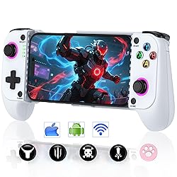 【Phone Controller for Your Favorite Gaming Platform】Our mobile game controller is suitable for your favorite gaming platform and supports any game that is native to the controller on your phone, allowing you to play most games. For example, platforms such as PS Remote Play, Steam Link, GeForce Now, MFi Apple Arcade, as well as Call of Duty, Roblox, Minecraft and other games 【Hall Effect Joysticks for Precision Gaming】 Experience unparalleled accuracy and durability with Hall Effect technology. The magnetic, contactless design ensures no stick drift and provides smooth, responsive control for both joysticks, perfect for competitive gaming 【No Dead Zone and No Stick Drift for Ultimate Responsiveness】 Enjoy zero input lag and no dead zones with this advanced controller. Every movement is registered instantly, giving you the precision you need for fast-paced games 【Mobile Gaming Controller with Phone Case Support】The ergonomic textured grip design fits your hands perfectly and feels comfortable to hold. And the wireless controller can be stretched 10cm-17.5cm, the contact surface is made of full rubber pad material, firmly clamp the phone without falling off. Meanwhile, the left side of the controller adopts a sunken design, reserving more space for the cell phone lens and case 【3 Turbo Speeds & Dual Vibration Motors】The android controller offers 3 adjustable turbo speeds (5/s, 12/s, 20/s) allowing for faster shots and getting you closer to victory. Linear trigger button design also helps you to accurately control the movement speed in the game. The gaming controller also has a dual motor vibration effect to bring you an immersive gaming experience 【Ideal Presents & Technical Support】The bluetooth phone controller is an ideal present for friends, family on birthday or any holiday! You can spend enjoyable gaming time together, and at the same time enhance emotional communication. If you have any questions about our android controller, we will solve them for you at the first time
