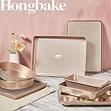 HONGBAKE 9-Piece Baking Pans Set Nonstick, Stackable Non Toxic Bakeware Sets with Diamond Texture, Oven Pan Set for Cooking, Includes Cookie Sheet with Rack, Cake Pan, Roasting Pan, Muffin Tin, Gold