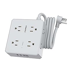 8 Outlets Power Strip with 4 USB Ports:The 3-side power strip with 8 AC widely outlets and 4 USB Charging Ports(Total 5V/4.2A), Each USB A port features 5V/2.4A Max output. USB C Charging Port features 5V/3A MAX. Power up to 12 devices simultaneously.Wide range voltage design, can be used on 120v to 240v circuit. 3 Side Design Surge Protector Power Strip with Wide Space:3-side design that makes it easier to make the plugs not covering any outlet, and the 8 AC outlets with 1.78 inches long space in between, larger than standard 1.5-inch socket. Larger spacing makes it easier to use for all kinds of equipment. The compact design saves more space, suitable for the home, office, and college dorm room. 6 Ft Flat Plug Extension Cord with Cable Ties:6 Feet Right Angled Flat Plug power cord makes it more flexible, Reusable Fastening Cable Ties Can tie up the unused cord and make it better organized. The two mounting holes on back allows this power strip to be securely installed in various applications. Multi Safety Protection:ETL Certificates. This power strip has overload protection, short-circuit protection, over current protection, over-voltage protection and overheating protection. The surge protector with overload protection protects your electrical appliances from lighting, surges or spikes. The minimum energy-absorbing capacity of 900 Joules. It will automatically cut power to protect connected devices when voltage surge is overwhelming. Our After-Sale Service:Our friendly and reliable customer service will respond to you within 24 hours. You can purchase with confidence, with our 30-day return and 12-month warranty.