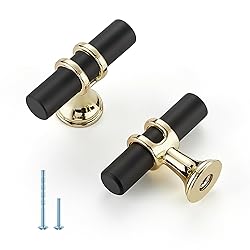 - Elevate your home décor with The Home Edit matte black and brushed brass and brushed brass Cabinet Knob Handle Set. Crafted for style and functionality, these premium T-bar drawer pulls add a touch of luxury and sophistication to any room. Made from sturdy materials with a sleek matte black and brushed brass and brushed brass finish, these single hole handles are designed to stand the test of time, providing durability without compromising on elegance. Ideal for updating cabinets, dressers, or drawers, these knobs seamlessly blend into any style—from modern and minimalist to classic and chic. The ergonomic T-bar design ensures a comfortable grip, making them as practical as they are stylish. Easy to install with the included screws, this set of handles is ideal for homeowners looking to add a quick and affordable touch of class to their furniture. Whether you're updating your kitchen cabinets, upgrading your bedroom vanity, or adding a unique touch to your bathroom vanity, these matte black brushed brass and brushed brass cabinet knobs can make anything feel refreshed. Their vibrant, matte black and brushed brass and brushed brass finish catches the light beautifully, giving your space an upscale feel that’s sure to impress.