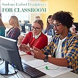 - Features: Class sets of headphones for students are reliable and long lasting, each kids earbuds headphone is individually packaged, well suited for classrooms, planes, libraries, hotels, museums, and gym use. Kids earbuds headphones for classroom are lightweight, easy to carry, provide clear sound and come with soft ear pads for comfortable fit, which can block outside noise to a certain degree, reduce tiredness on planes and trains. Specifications: Material: PVC, silicone Color: green Size: approx. 35.43 inches/ 90 cm in length Package includes: 100 x White and black headphones Notes: Manual measurement, please allow slight errors in size. The color may exist a slight difference due to different screen displays. Winding risk may exist, please use it under the supervision of adults.