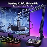 [USB/XLR Connectivity] Versatile PC gaming microphone kit with USB compatibility for PC in streaming or recording and XLR compatibility for mixer or sound card connection in vocal, podcast or music creation. [XLR Mic Input] One XLR microphone input interface is set on the gaming audio mixer, which is great to up your audio quality with your XLR setup. The XLR mixer is a stepping stone to upgrade your live streaming. Audio mixer offered built-in 48V phantom power which opens up more choices for mics. Directly use it with your condenser microphone but do not deal with added peripherals. (NOT available for USB mic) [Controllable Vibrant RGB] RGB button on the audio mixer DJ meets different live streaming themes. Lights on the video mixer is vibrant but not harsh on your eyes. Flowing or frozen RGB color rotation in a decent pace presents a greatly strong impression as a "light show" to your audience. Even a streaming equipment accessory will not be dull looking when video production. [Reliable and Sturdy] Crafted with top-quality materials, the XLR audio cable is built to withstand the rigors of frequent use, providing long-lasting performance and durability. [Secure Connection] Designed with sturdy connectors and reliable shielding,the XLR cable ensures a secure and interference-free connection, minimizing signal loss and unwanted noise.