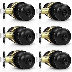 Estmoon 6 Pack Door Knobs, Matte Black Privacy Door Knob with Lock, Keyless Door Handle with Lock for Bedrooms/Bathrooms