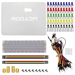 • Mogaopi Electronic Components Package includes 6 different kinds components: Resistors, Electrolytic Capacitors, LEDdiodes, Ceramic Capacitors, Diodes, Transistor, Includes 1390 pcs of the most important and usefull Eletronic Components.Electronics Component Fun KitAcrylic Base Plate Kit Compatible with Arduino Raspberry Pi Holder Breadboard KitIntroductionmogaopi Acrylic Base Plate Breadboard kit is suit for kids and beginners, developing and cultivating logical thinking, programming thinking and hands-on design skills.-This Acrylic Base Plater Kit provides you with all the necessary components for a simple experiment, including threads for easy screwing, Solderless Breadboard, 50pcs LED diodes, male-to-male 65pcs jumper flexible wire cables, a screwdriver, and some screws, especially with 4 rubber feets to holder from slipping.Thus you can start the experiment right away.-It can be used compatible with R3, Mega 2560 & Raspberry Pi 4B, 3 Model B+, 3 Model B.keeping everything convenient and neat, free of careless short circuits on a metal desk or caused by some metal parts underneath.