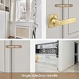 Bonpoly 1 Pack Satin Brass Dummy Door Knobs, Interior Door Handles for Closet/French Doors, Pull Only Lever Set, Non-Turning, for Left Right Handed Doors, Modern Square Design