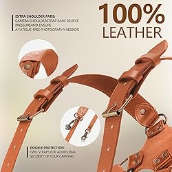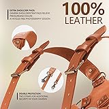 ❣️【ADJUSTABLE SIZE& SMALL SIZE】4J LEDR Dual Camera Straps for Photographers,adjustable length, 1.5 inches wide shoulder pad, which increases the force-bearing area and prevents shoulders from excessive friction and injury. Applicable to people with height below 5.5 feet and weight below 154 pounds,If you are taller than 5.5 feet and heavier than 154 pounds, you can choose: B0BMLZB1MT, B09X1XKSNR, B0CKQD1L1F ❣️【DUAL CAMERA HARNESS 】 If you use two cameras at work, you need this leather shoulder strap, which allows you to use two cameras with different focal lengths, reducing switching time. If you decide to use one camera, just hook the safety strap of the empty side around your belt, clip it back and you are good to go ❣️【HIGH-QUALITY LEATHER CAMERA STRAP 】The dual camera harness is made of high-quality leather material, a strong metal ring, and a safe and stable X-structure design to better protect your camera ❣️【CAMERA STRAPS for PHOTOGRAPHERS】4J LEDR camera strap is very suitable for professional photographers, whether you are using the double camera harness strap outdoors or at a friend's wedding, the camera shoulder strap makes your busy work easier and smoother. You can also give it to him or her as a Valentine's Day gift ❣️【WIDE APPLICATIONS】Whether you use Nikon, Canon or any DSLR, our Dual Shoulder Leather Harness offer you unmatched performance, reliability and comfort. Multi Camera Gear for DSLR/SLR