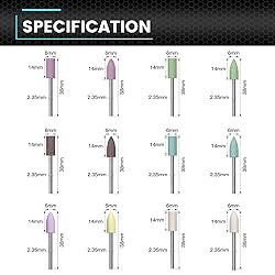 Versatile Materials: This rotary polishing kit offers a selection of six high-quality materials including Corundum, Sesame, Cowhide, Rubber, Silicone, and Wool, allowing you to achieve professional-grade polishing and sanding results on various surfaces. Precise Shapes: With both cylinder and bullet shapes included, this kit provides precise control and flexibility, ensuring you can easily reach even the most intricate areas during your polishing projects. Perfect Fit: The 2.35mm shank of the rotary bits is specifically designed to seamlessly fit electric rotary tools, guaranteeing a secure and stable connection, so you can focus on achieving flawless polishing without any distractions. The Pink Jade Head: Ideal for sanding, chamfering, and rough grinding. The Sesame Grinding Bit: Perfect for rough grinding of aluminum and copper. The Cowhide Heads: Ideal for polishing agate, molds and aluminum. The Rubber Grinding Heads: Quickly polish hardware accessories and more. The Silicone Heads: Versatile for precision smoothing, polishing, and refining. The Wool Heads: Widely used in mirror polishing for various applications; need to be used together with the abrasive paste. Convenient Packaging: The kit comes complete with 12 rotary polishing and sanding bits, neatly organized in a portable plastic box. This thoughtful packaging ensures easy storage, quick access, and hassle-free transportation, keeping your tools organized and ready for any polishing task.