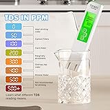 【MULTIFUNCTIONAL (4 IN 1) & 5 UPGRADED】 4 in 1 TDS Meter, Electric Conductivity Meter & Temperature (°C,°F)Meter features the most updated technology.Upgraded with big backlit LCD for easier reading, auto-lock function for easier use, factory calibrated and hold function for direct use and auto-0ff in 2 minutes to conserve battery. These enhancements make it a user-friendly tds meter digital water tester for a variety of applications 【USER-FRIDNDLY DESIGN& QUALIFIED WATER TELLER】LIKDAY water hardness test meter with Big Backlit LCD is far superior than most digital water quality tester display, which allows wider angles of data reading and night reading. Besides, when ppm figure over 40 drinking with caution. And ppm figure below 40 indicates TDS figure qualified for direct drinking water (Notes: International standard adopted TDS figure 40 as a dividing line.) 【PPM Value Range】Ppm values 0-50 means ideal drinking water; ppm values 50-100 means comparatively ideal drinking water; ppm values 100-200 means marginally acceptable drinking water; ppm values 300-400 means the scale will form;ppm value 400-500 indicate the water taste is not very pleasant; If the ppm value is over 500, the water is contaminated and cannot be drunk 【EASY OPERATION & ENERGY SAVING】LIKDAY ppm meter allows one button operation, just turn it on and put tds meter into water, you can get stable and accurate data in seconds. Besides, there is a reference chart at the back of this test meter for tds figure explanation 【Reliable Brand】LIKDAY tds meter is a professional water quality testing tool to help you get clean and safe drinking water. This water quality tester provides everyone with an accurate and reliable means of checking the quality of their water and safeguarding the quality of your drinking water 【HEALTH&BETTER LIFE】Our easy-to-use device lets you quickly and accurately test the purity of any water source, giving you peace of mind that you're drinking clean and healthy water.