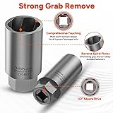 Upgraded New Sizes: Compared to regular deep bolt extractor kits, our kit includes commonly used sizes (14mm, 16mm, 17mm, 19mm) plus larger options (21mm, 22mm, 24mm, 27mm) to meet a wider range of work needs Deep Well Design: Enables easy extractor nuts in tight spaces, addressing the limitations of other short extractors. The extended length provides more workspace than regular lug nut removers Strong Grab Remove: The reverse spiral groove and multi-point contact design ensure optimal torque and easy removal of damaged fasteners Sturdy Build: Made from 42 CR-MO steel, CNC machined and hardened to 60 HRC, our extractors are built to withstand heavy-duty tasks Wide Compatibility: This bolt extractor socket set works with 1/2" drive tools and includes an extractor bar for removing stuck bolts, ideal for auto, SUV, van, truck, and home repairs