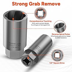 THINKWORK 1/2 Inch Drive Lug Nut Extractor Set, Large Sizes, 10pcs Wheel Lock Removal Kit, Deep Lug Nut Removal Tool for Damaged, Stripped, Rusted, Broken, Rounded Bolts, Nuts