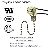 - Pull Chain SwitchSpecifications: Ceiling Fan Switch maximum of 3-amps at 250-volts or 6-amps at 125-volts Switch Material: Plastic Body , Function: On-Off switch for fan lights ZE-109 2-wire pull chain switch compatible with ceiling fan light and lighting fixtures It can also replace the pull chain switch of incandescent , halogen, led bulb and lamp Note: Please turn off the electrical power before rewiring any ceiling fan. Wiring Steps: 1. Turn off the electrical power 2. Make sure the existing light switch has 2 wires. If there are 3 wires, a three-wire switch is required 3. Use a wire stripper to cut the two wires from the existing light switch 4. Strip about 1/2 inch of the black wire 5. Connect one of the black wires from the light switch to one of the black wires from the ceiling fan 6. Connect the other black wire from the light switch to the other black wire from the ceiling fan 7. Secure the connection between the wires by twisting the wire connector clockwise 8. The wire connection must be secured, otherwise it may cause fire, electric shock or serious injury Package: 2PCS Ceiling Fan Light Switch Zing Ear ZE-109