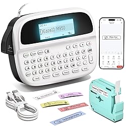 Two Printing Modes : Unlike traditional keyboard label makers, EazeID M950 portable mini label maker printer supports both QWERTY keyboard printing and Bluetooth connect to the "Print Master" app and gain free access to a vast library of customizable label templates. The app supports over 1000 patterns, 100+ frames, 100+ fonts, barcodes, and QR codes Rechargeable Portable Bluetooth Label Maker - No More Battery Waste - Built-in 1200mAh lithium battery provides hours of continuous use. Includes USB-C charging cable and label tape roll. Compact handheld design with backlit LCD screen ensures clear visibility in any lighting condition Ergonomic QWERTY Keyboard for Comfortable Typing - Full-size keyboard layout with wider key spacing reduces typing errors and finger fatigue. Tactile feedbacks ensures accurate input for professional labeling. Ideal for users who prefer traditional typing over smartphone apps Versatile Labeling Machine for Home & Office Organization - Perfect for organizing storage containers, kitchen items, office files, school supplies, and personal belongings. This mini christmas label maker makes thoughtful gift for christmas, cool personalized teacher gifts for classroom, organization gifts for women, bulk office gifts, work from home gifts, customized gifts for kids, practical gifts for organized people Waterproof Label Maker with Advanced Protection - EazeID M950 label maker waterproof labels creates durable waterproof labels perfect for kitchen organization, and bathroom storage. Unlike standard label makers, our waterproof technology ensures labels stay readable even when exposed to moisture, making it ideal for home classroom and office organization