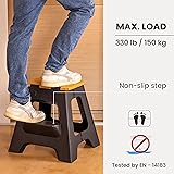 Compact Step Stool: The stool maximum weight capacity is 330 pounds; it measures 20.0-inch high by 3.1-inch wide by 16.9-inch long when folded and 16.1-inch high by 15.4-inch wide by 16.9-inch long when unfolded. Lightweight and easy to carry. Multipurpose Step Stool: This foldable stool helps reach high places like counters, cabinets, and shelves. Ideal shower stool for inside shower, bathroom stool, step stool for bed, closet step stool, folding camping stool, and utility stool. Portable Folding Stool: This collapsible stool features internal handles that fold and unfold with a single movement, making it easy to carry, hang, or store in tight spaces due to its compact design. An ideal folding step stools for adults. Step Stool with Handle: The foldable stools for adults feature anti-slip grips, a durable textured base, and stabilizing rubber feet to prevent slipping. This ensures the foldable step stool stays securely in place and safe stepping stool for adults. Vigar Folding Stools: The step stool passed testing and certification based on EN 14183. Our folding stool is safe, exceptional, and convenient. If you have any questions about the stools, feel free to contact us, and we’ll do our best to assist you.