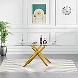 ★【Elegant 5-Piece Glass Dining Table Set for 4】 This 5pcs rectangle dining room table set includes 1 Glass kitchen table and 4 upholstered velvet dinner chairs. With a minimalist look and luxury Elegant design, this beautiful long Glass dinner table set will fit perfectly with a wide array of home decor. ★【51" Clear Glass Top Kitchen Table with Shiny Cross Legs】The base of this rectangle dining table is made of quality metal cross base. Which makes this table unique and attractive in your room. The sleek cross-shape legs come together to create a visually inspiring table that is as much a piece of art as a functional table. ★【Beatiful Royal Dining Chair With Tufted Backrest】From Plenty decorative nailhead inset arectangle cushion and back, to chic tall back with pull ringing design, not only make it looks noble and elegant but also give the whole dining chair a feeling of exquisite luxury. Ergonomic tufted high back provides day-long comfort without feeling back pains. ★【Multi-Functional Thick Tempered Glass Dining Table Set for 4】Anyone can enjoy meals, breakfast and leisure time with this dining room set. Place them in your dining room, living room,balcony or eat-in kitchen for maximum convenience ★【Easy Assembly 】 Modern 5pcs rectangle Glass top dining table and velvet chairs set with delicate look yet has a simple structure. This modern kitchen table set for 4 is super easy to assemble. All labeled pieces and tools are included.