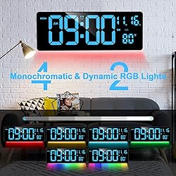 - REXS 16.5" Digital Clock Large Display with Remote Control 7 Color Changes Night Lights LED Wall Clock, Adjustable Dimmer, Temperature Clock for Bedroom, Desk Alarm Clock for Teens Elderly