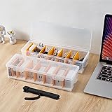 EFFORTLESS ORGANIZATION: Fzooua cable organizer box helps you keep all your cables in order, ensuring a neat and tidy desk. The included wire ties can be fixed onto your cables, preventing loss and making cable management a breeze CLEAR VISIBILITY & DUST PROTECTION: Made from non-toxic PP plastic, Fzooua charger organizer box features a transparent design that allows you to easily locate the cable you need without rummaging through drawers. The transparent lid also provides dust and moisture protection CUSTOMIZABLE STORAGE: The cord storage organizer comes with removable dividers that can be inserted horizontally or vertically. This allows you to store larger items like phone charger and power cords with ease. Unlike traditional organizers, our cable storage box has slots at the bottom for more flexible space adjustments, giving you the freedom to customize your storage OPTIMAL SIZE & STACKABLE DESIGN: Measuring 11.8x3.9x2.8 inch, each set includes 2 charging cable storage boxes and 16 cable ties. The stackable design ensures stable stacking, maximizing your storage space without sacrificing stability VERSATILE USE: Our wire organizer box is perfect for storing cables, phone chargers, power cords, and wires. It can also be used for makeup items, band-aids, contact lenses, or office supplies like cards and paper clips, making it an all-purpose storage solution