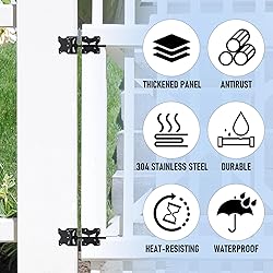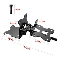 Package Includes: 2 door hinges, 26 vinyl mounting screws, and 1 swing adjustment tool. The hinges can be used on fence gates up to 100 inches wide and weighing up to 100 pounds Durable & Sturdy: The heavy duty self-closing gate hinges are made of iron with a black finish powder coated for durability and strength for long term use indoors or outdoors Adjustable: Using the swing adjustment tool, insert the stopper (small rod) into the small hole located at the top of the hinge to secure it in place. The 90-degree adjustable gate hinge can adjust the gap between the door post and door frame to between 3/4 inch and 1-1/2 inches, which can be tightened or loosened according to your needs Self-closing: The door hinges have spring tension, and you can adjust the spring to the appropriate position and adjust the tension as needed to achieve a self-locking function Wide Applications: Fence door hinges are suitable for a variety of scenarios, such as sheds, fences, wooden doors, garden doors, metal doors, etc., providing additional security for your home Note: This adjustable door hinge is designed for doors that are parallel to the door frame. It must be installed on the inside of the door and is suitable for inward-opening doors
