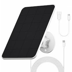 【Compatible with eufy Camera】Rhorawill solar panel is compatible with outdoor eufyCam 2/2 Pro, eufyCam 2C/2C Pro, eufyCam E, soloCam E20, soloCam E40 and other security cameras, which can get uninterrupted and stable power from the sunlight, with very little direct sunlight, it can keep your camera to work continuously, eliminating the need for batteries and power adapters. Not applicable to indoor eufy cameras. 【Effective and safe charging】The solar panel can reach 5V 1A current and 4W power, the energy conversion efficiency is up to 21%, made of monocrystalline silicon wafers, which can effectively improve the charging efficiency. It can charge quickly under sunlight and charge your camera on cloudy days, perfectly compatible with eufy's charging protocol. Built-in smart IC provides overcharge, overheat, overvoltage and short circuit protection. No need for additional charging. 【Easy to Install】You can install the solar panel in any outdoor place. Simply punch a hole in the wall, install the 360° rotatable wall bracket, face the solar panel into direct sunlight, select the appropriate rubber plug, and then plug the 9.8-foot (3-meter) charging cable USB-C connector into the back port of the camera, or use the USB-C to Micro USB adapter cable provided (included). The surface is made of ETFE material for up to 5 years of service life. 【IP65 Waterproof】The solar charger is made of high-quality environmentally friendly materials, which can withstand all kinds of weather such as rain, snow, thunderstorms, etc., suitable for outdoor use. Able to withstand harsh weather conditions, easy to clean and durable. Operating temperature range is 14°F to 113°F (-10°C to 45°C). Special rubberized plug option ensures that the connection between the camera and the charging cable is sealed, preventing rainwater from entering the camera. 【Eufy Outdoor Battery Camera Accessory Products】The solar panel charger and mount are supporting products for the eufy Outdoor Battery Camera charging system and are eufy Outdoor Battery Camera accessories. Product List:1 x 5V 4W Solar Panel, 1 x 360° Secure Wall Mount Adjustable Bracket,1 x 3.0m (9.8ft) USB-C Cable, 1 x USB-C to Micro USB adapter, 5 x Sealing Rubber Plugs, 3 x Sets of Fastening Screws and Screw Pouches, 10 x Cable Clips, 1 x User's Manual. The charging efficiency depends on the intensity of the sunlight and the power consumption rate of the outdoor camera.