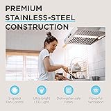 Ivation 30” Under Cabinet Range Hood - 600 CFM - 3-Way Venting - Built-In LED Light & Clock - Auto-Off Fan Timer - Dishwasher Safe Stainless Steel Baffle Filters