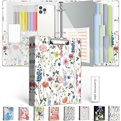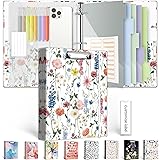 - 3 Ring Binder 1 Inch, Three Ring Binder Organizer with Clipboard, 5-Tabs Pockets Dividers, Plastic Folder, 18 Divider Stikers, BVSSX Pretty Binder with Pen Loop (Blue Bloom, Letter Size)