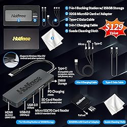 【Upgraded】Seal is opened for upgrade only, 1-Year warranty on Upgraded RAM/SSD and original 1-Year Manufacture warranty on remaining components. 【14" HD BrightView Display】The captivating clarity and brilliance will surely enhance your work and entertainment endeavors.With a micro-bezel display, prepare for unparalleled immersion on an expansive screen. 【Intel Processor N150】Seamlessly multitask between study materials, stream your favorite entertainment content, and browse the internet smoothly without any lag. Experience Intel performance with entertainment features and fast connectivity. 【16GB DDR4 RAM】Seamlessly tackle resource-intensive tasks, smoothly run multiple applications simultaneously, and enjoy lightning-fast responsiveness that keeps you in the flow.【416GB Storage 】128GB eMMC + 256GB 7-in-1 docking station + 32GB MicroSD card adapter. Delivers blazing boot-up speed and enhanced storage capabilities. Effortlessly access your extensive digital library with ease. 【Intel UHD Graphics】Enjoy solid image quality that brings your everyday content to life with vibrant colors and sharp details.【720p HD Camera】Provides high quality video calls, virtual meetings and online interactions. 【Windows 11 Home in S Mode】【Dimensions & Weight】Item dimension: 12.76 x 8.86 x 0.71 inches, 3.24 lbs.【Ports】1 x USB-C 3.0, 2 x USB-A 3.0, 1 x HDMI 1.4, 1 x Media Card Reader, 1 x Headphone/ Microphone combo, 1 x AC Smart Pin. 【1 Year Office 365】【Bonus Docking Station Set】1x 7-in-1 Docking Station with 256GB Storage, 1x 32GB MicroSD Card with Adapter, 1x Type-C Data Cable, 1x 3-in-1 Charging Cable, 1x Suede Cleaning Cloth.