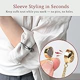 MAGNETIC CLOTHING CLIPS — NOT A PIN (NO HOLES): These magnetic clothing clips hold by clamping layers of fabric between magnets. They do not pierce fabric like pins or brooches—no holes, no snagging, no sewing. STYLING ACCESSORY WITH CHAIN DRAPE DETAIL: Add a polished chain-drape look while styling cardigans, shawls, scarves/hijabs, necklines, and light layers. Helps create a neat waist cinch and tidy sleeves for everyday outfits. MAGNETIC HEM CLIPS FOR SHIRTS & LIGHT HEMS (BEST ON LIGHT–MEDIUM FABRICS): Best for T-shirts, blouses, scarves, and light cardigans. Not recommended for thick winter sweaters, heavy coats, puffer jackets, or heavy denim. For heavier fabric, use 2 sets. SLIDE SIDEWAYS TO OPEN (DO NOT PULL BY THE CHAIN): To release, slide/push sideways. Avoid pulling by the chain or prying straight apart—proper opening helps reduce stress on the housing and keeps the magnets seated. 8 PACK MIXED COLORS, METAL SHELL: Includes 8 pieces total (2 each color)—Silver, Gold, Rose Gold, and Black. Lightweight metal shell with smooth finish—easy to match different outfits for daily wear, travel, and gifting.