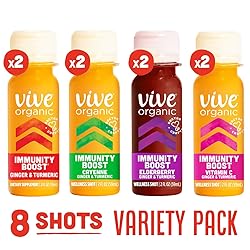 Vive Organic Immunity Boost Shot Sampler Pack | Immunity Boost Original | Immunity Boost Cayenne | Immunity Boost Elderberry | Immunity Boost Vitamin C (2oz shots, pack of 8)