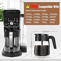 Perfect Compatibility - 60 oz. (12-cup) glass carafe replacement compatibility with Ninja coffee makers models# CFP101 CFP201 CFP301 CFN601 CFP200 CFP250A CFP300 CFP305 CFP307 CFN602 CM400 CM401 CF090 CF091 CF092. If you are unsure whether the carafe replacement is suitable for your model of ninja coffee pot, please contact us before purchasing. More Durable Glass - The carafe replacement is made of hardness borosilicate thickened glass, BPA free, high heat resistanceand not easily broken. which has a longer service life. The ergonomic handle and spout make it easy to control of pouring. Easy to Clean & Dishwasher safe - Wide opening of the glass carafe make it easy to wash the carefe inside and bottom. Simply separate the brew-through lid and glass carafe body of the coffee pot, rinse with water or put them in the dishwasher. Ideal Gift Choice - Surprise your loved ones with the perfect gift for coffee lovers. Our premium Ninja coffee maker replacement carafes are not only practical but also a thoughtful present for friends and family. Satisfaction Guarantee – If you are not satisfied with our coffee pot replacement or receive a defective product due to a shipping issue, please feel free to contact us. We will do our best to solve your problem!