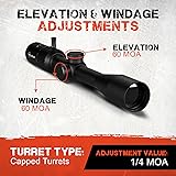 Precision Targeting: Equipped with a duplex wire reticle for precise aiming, and offers 4-12x magnification, allowing users to adjust their view for various distances and outdoor scenarios effectively. Adjustable Settings: Provides maximum windage and elevation adjustments of 60 MOA each, giving users the ability to fine-tune their aiming point for long-distance situations and adapt to challenging conditions. Weather-Resistant Design: Boasts an IPX5 waterproof rating, ensuring the scope performs reliably in wet and rainy conditions, making it highly suitable for outdoor use in diverse and unpredictable weather. Secure Adjustments: Features capped turrets to protect adjustment knobs from accidental changes, ensuring that users' settings remain consistent and secure throughout their use, even in rigorous environments. Superior Optics: Utilizes fully multicoated lenses to deliver clear, bright images by maximizing light transmission and reducing glare, ensuring optimal optical performance across various lighting conditions.