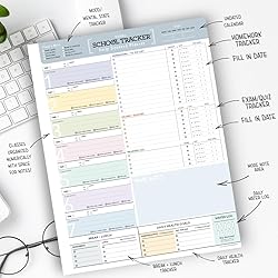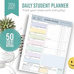 - Stay Organized with Our Daily Notepad for Students! Stay on top of your class to-do lists, homework, exams, and reading with this high-functioning notepad. 🌟 Quality Design & Function - Our notepad features colorful, fun, clean, undated daily sheets with 50 high-quality tear-off pages. Each 8.5 x 11 inch sheet is printed on 70 lb uncoated stock, offering a minimal and organized design. Proudly designed and printed in the USA. 😃 Boost Productivity and Reduce Stress - Our desk pad helps you organize your classroom days by class periods. Take brief class to-do notes and organize your daily tasks while ensuring you still have time to relax and enjoy school life. 💧 Track Water Intake & Daily Health & Activities - Easily monitor your daily to-do list, food intake, and health goals. Keep track of your daily water intake to stay hydrated too! 🖊 Plan Ahead - With dedicated spaces for planning and reminders, homework tracking, exam tracker, and reading assignments have never been easier to track. Never miss a deadline again. 🎁 Great Gift Idea - Perfect for your daughter, mom, aunt, cousin, or niece on birthdays, graduations, business milestones, anniversaries, holidays, or any special occasion. Our notepad is a stylish, minimalistic, and practical gift for anyone looking to stay organized all year long in school. ❤️ You'll Love It! - We hope you enjoy the design and find it useful for years to come. If you love it, consider purchasing more! Thank you for supporting our small business!