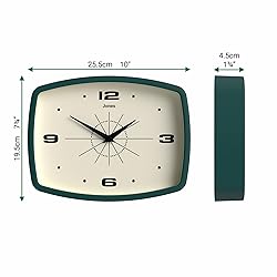 JONES CLOCKS® Movie Wall Clock | Rectangular Retro Clock | 10 inch | Dark Green | Cool mid-Century Designer Look for Kitchen, Living Room or Office