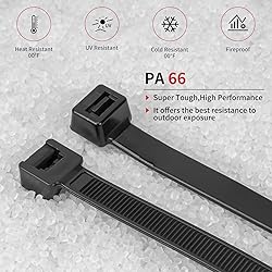 - 【Heavy Duty】The strength tensile of a zip tie depends on its width. Zip Ties with 250 lbs are 0.48 inches / 12mm Wide. which makes the cable tie stronger than the same size cable tie on the market and tensile strength could handles most purpose of binding in life.