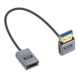 - Duttek 8K 90 Degree HDMI Extension Cable 1FT/30cm, Down Angle HDMI Male to Female Cable, HDMI 90 Degree Adapter Cable High Speed 48Gbps Bandwidths, HDMI Cord for GH5S, PS5, Xbox One Monitor 8K hdmi 90 degree adapter softer, more comfortable and easy bending , which makes it more convenient to pack up and take photosideos out. This hdmi cable is the best choice for professional camera operators for use on camera rigs.
