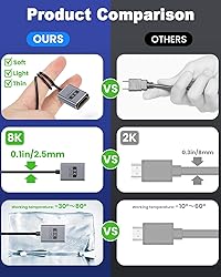 [Ultra-Thin High-Speed HDMI Extension Cable] The coaxial HDMI 90 degree adapter cable boasts powerful interference resistance and stability, supporting ultra-long-distance transmission with no signal loss, ensuring signal integrity and audio fidelity. The short HDMI cable has a diameter of Φ2.5mm, is highly flexible, and easy to bend, making it ideal for photography, videography, watching videos/TV, and gaming. The 8K 90 degree hdmi adapter supports up to 48Gbps bandwidth transmission, with Small HDMI to HDMI cables supporting 8K@60Hz and 4K@240Hz resolution and refresh rates, and is backward compatible with 4K@120Hz, 2K@240Hz, HD240, and 1080P 3D. Coaxial hdmi 90 degree cable: Wide Compatible with all HDMI devices, iGame consoles (PlayStation, Xbox, Nintendo Switch), camcorders, digital cameras, video conferencing systems, desktops, laptops, TVS, monitors, projectors, Blu-ray players, DVD players, sound systems, AV receivers, tablets, etc [ Low Latency and Dynamic HDR Functionality:] The HDMI angle adapter cable includes Automatic Low Latency Mode (ALLM) and Quick Media Switching (QMS) features, which are suitable for gaming and multi-screen office applications requiring low latency. Additionally, Dynamic HDR functionality enhances image depth, detail, brightness, contrast, and color gamut, resulting in superior display quality. 8K HDMI 90 degree adapter cable: Plug-and-Play, High-Quality Audio Transmission,The short HDMI cable supports ARC/eARC functionality, capable of transmitting high-quality audio formats such as Dolby TrueHD and DTS HD Master Audio, supporting 5.1/7.1 channels, making it ideal for those who demand high-quality audio.