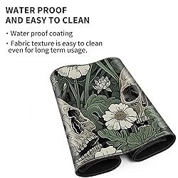FXIANGWL Patterned Gaming Playmat Compatible with MTG, Compact Card Game Mat with Stitched Edges, Natural Rubber Desk Pad with Transparent Drawstring Bag, 23.6 x 13.7 Inch, Human Skull Head Flower