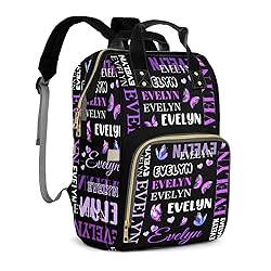 Coifrok Customizable Large Capacity Diaper Bag Personalized Name, Waterproof Multi-Function Mommy Bag with Thermal Pockets for Girls and Boys,Purple Butterfly