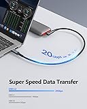 20Gbps Super Fast Data Transfer: SUNGUY usb c 3.2 gen 2 cable provides up to 20Gbps super speed sync, connects hard drives and SSD, and transfers large files in seconds. Save more time in the office, 2X Faster than USB3.0 /3.1 Gen 1 with this usb 3.2 cable. 100W/5A Fast Charging: SUNGUY usb c data cable supports max 5A current 100W power through.Fully meet the charging power needs of professionals for iPhone 16 15 Pro Max, MacBooks Pro, and any USB-C device at max speed. NOTE: Requires a C-port adapter of appropriate power. 4K 60Hz HD Video Output: SUNGUY usb c monitor display cable supports thunderbolt port and Offers 4K@60Hz (3840*2160) video output function from USB C laptops to USB C display screen or monitor. (Note: The video function works for those devices that the USB C port supports DP Alt Mode.) Right Angle Design: SUNGUY 2FT/0.6M short right angle usb c to usb c cable uses an innovative 90 degrees L design, suitable for business travel and charging phones with power packs. What You Get: You will receive 1-Pack 2FT 100W 20Gbps usb c to usb c cable, with our 12-month product replacement warranty and lifetime 24/7 friendly technical support.
