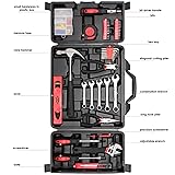 TLGREEN specializes in tool categories, trusted by rational customers. Basic Tool Kit: Our basic tool kit for home contains the most useful tools for household repairs and diy projects. It comes with bits, screwdrivers,precision screwdriver, bit driver handle, adjustable wrench, long nose plier, diagonal cutting plier, hex keys, combination wrench, level, measure tape, knife, claw hammer, small hardwares in plastic box and a storage case. Durable & Sturdy: The hand tool kit for home is forged from high-grade steel, features sturdy and durable, high hardness, and resist corrosion. Our machanics tool set for home will last for long time without rust or abscission. Multifunctional tool kit: This home tool kit contains basic tools for daily repairs and DIY projects like picture hanging, box opening, screw tightening, this is the perfect starter hand tool set for home repairs. Limited tools with unlimited functionality. Easy to Carry & Store: Our home repair tool sets comes with sturdy handy carrying case for easy storage and portability. Its sturdy interior and organizer keeps tools in place. Ideal for Festivals: Our hand tool kit is perfect choice for Father’s day, Christmas Day, birthday, anniversary and holiday. It’s also suitable for no matter men or women, technician or greenhorn. You can put this basic tool kit for home, office, garage, dorm, etc.