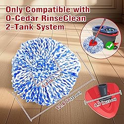 Only Compatible with O-Cedar EasyWring RinseClean 2 Tank System: Please note that this mop replace head and mop base don’t fit for O Cedar EasyWring 1 Tank Spin Mop & Bucket System Durable Mop Heads for Ocedar Spin Mop: Package includes 2 mop replacement head and 1 mop base. The mop refills are made of high-quality microfiber, which makes it super absorbent. It'll be a great partner for your floor cleaning Dry & Wet Use Spin Mop Replacement Head: The microfiber mop heads can be used as a dry mop for grabbing hair, detritus and animal fur on the floor; also used as a wet mop for absorbing extra water Multipurpose Application: The mop head refills are soft and they won’t make any scratches on the surface you are cleaning. Perfect for marble, hardwood, tile, laminate, ceramics, or sensitive surfaces like window and glass Machine Washable: The replacement mop heads can be simply washed and dried in the washing machine, which frees your hand from touching dirty water. Ideal for maintaining the cleanliness of your home, office, kitchen, living room, and bathroom