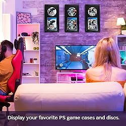 Video Game Display Frame Compatible with PS5/PS4/PS3 Game Case and Disc, with EVA Foam Lining & Black Flocked Fabric, Gaming Picture Frame, Gaming Room Decor, 8"x15"