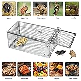 Humane, No-Kill Design: This live mouse traps catch and release allows for the safe capture and release of rats and small rodents without harm, offering a compassionate and effective solution for rodent control. Perfect for animal lovers who want a humane method of pest management Highly Sensitive Trigger System: Equipped with a sensitive mechanism, the squirrel trap quickly locks the door when rodents enter, ensuring that they are safely contained. The rapid response reduces the chance of escape, making the trap efficient and reliable Durable & Reusable Construction: Made from high-quality, rust-resistant materials, these humane mouse trap are built to last through multiple uses. Designed for both indoor and outdoor environments, they can withstand varying weather conditions and are easy to clean and reset Simple Setup and Use: No special tools are required to operate these mouse traps indoor for home. Simply bait the trap, set it up where rodents are commonly found, and let the trap do the rest. It's user-friendly and perfect for use in homes, garages, or gardens Safe for Kids and Pets: This live animal trap uses no poisons, chemicals, or harmful mechanisms, making it safe to use around children and pets. The design ensures that only the rodent is trapped, providing peace of mind for households with small children or animals