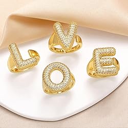- Brand: LIUJUN. Product Name: Bubble Letter Ring Gold For Women. Dangle: Alphabet Initial. Material:Copper. Size: Adjustable. Color: Gold.