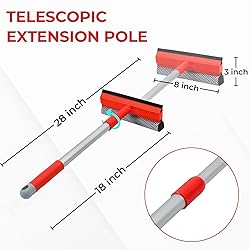 MAVRIZ Window Cleaner Tool features an extendable handle, absorbent sponge, and built-in squeegee. This windshield cleaning tool is sturdy and well-constructed, ensuring long-lasting use. With this window squeegee, you can easily and quickly clean the windows of your home, bathroom, and car. 【Car Wash Squeegee with Adjustable Handle】 can be extended from 18" to 28.5", which helps reach higher windows or awkward areas without a ladder. It saves your back and makes window cleaning more efficient. 【2 in 1 Windshield Cleaner Tool】 The meshed sponge effectively removes dirt and grime without scratching the glass. The rubber squeegee is excellent for wiping away water and leaving a streak-free and clear windshield. A perfect "gas station" window squeegee. 【Squeegee for Window Cleaning】This windshield squeegee is perfect for all seasons, whether you're battling summer bugs or winter snow. It provides efficient cleaning with less effort. Easy to store in your car and use it whenever. 【Versatile Window Cleaning Squeegee】 Perfect for windshield, glass door, window, mirror, and shower glass. This car squeegee for drying has made window cleaning a breeze, both indoors and outdoors. A nice window squeegee for home and car!