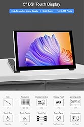 TUOPUONE 5inch Capacitive Touch Display for Raspb Pi DSI Interface IPS Panel 1024x600 Pixels Toughened Glass Panel Driver-Free with Metal Stand