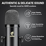 TONOR ASMR Microphone Equipment Bundle with Audio Interface, Immersive 3D Stereo Audio, Dual Condenser Mics with Audio Mixer, Clear Sound, Volume Control, with Furry Windscreens, Set for ASMR, Black